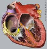 Atrial flutter is a usually regular rhythm which typically involves a circuit with anticlockwise rotation around the right atrium. It can be paroxysmal but more often is persistent and can be difficult to terminate with drugs. Cardioversion is usually required.